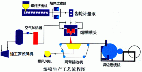 錦工風機已經為250多條熔噴布產線配套了羅茨鼓風機,對于熔噴布的生產線相關內容給大家普及一下。熔噴布產線主要是有以下幾個部分組裝。 羅茨鼓風機,空氣加熱器,自動吸料烘干機,單螺桿擠出機,過濾器,熔體計量泵,噴絲模頭,接布臺,靜電駐極機,切布及卷布。