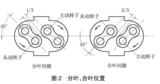 齒輪磨損,齒輪側(cè)間隙增大,將造成兩轉(zhuǎn)子位置發(fā)生變化,使主動轉(zhuǎn)子與從動轉(zhuǎn)子之間合葉間隙變小、分葉間隙增大,引起兩轉(zhuǎn)子互相碰撞、摩擦。